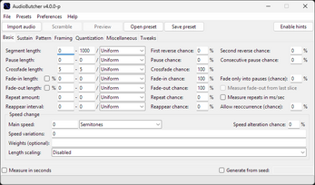 AudioButcher is a program that randomizes segments of imported audio for a defined amount of time.
